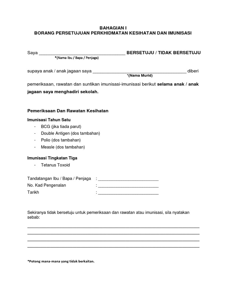 Download Borang Persetujuan Perkhidmatan Kesihatan Dan Imunisasi