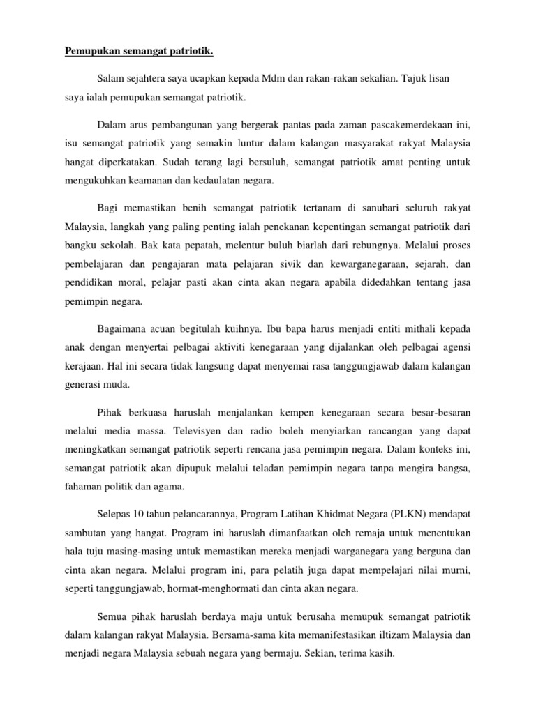 Isu Tentang Semangat Patriotik Semakin Luntur Dalam Kalangan Masyarakat Sering Diperkataka1 Docx Isu Tentang Semangat Patriotik Semakin Luntur Dalam Course Hero