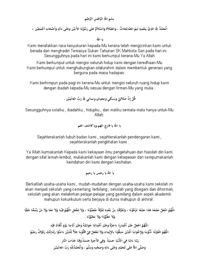 Doa Hari Sukan Tahunan Sekolah