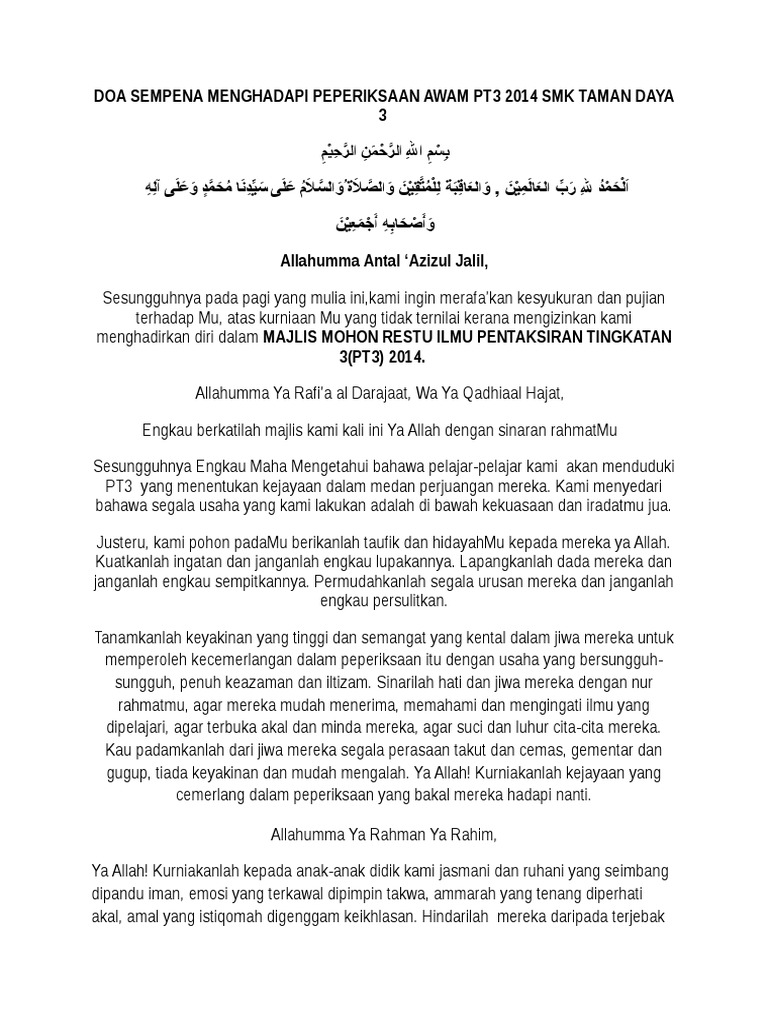 Doa Majlis Restu Pelajar Pmr Spm Edisi Sendiri