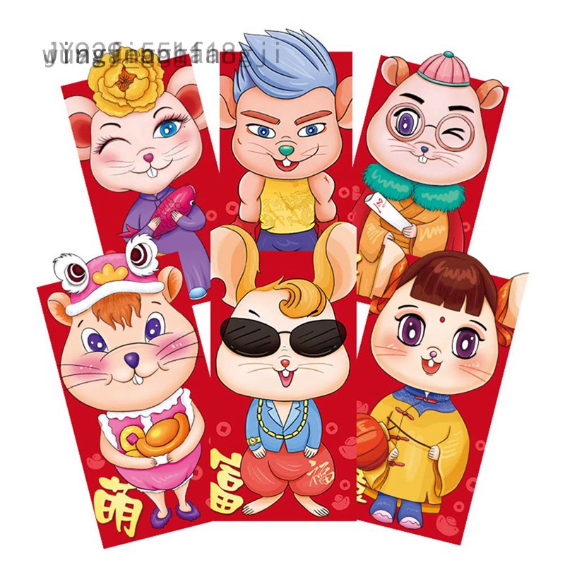 6pcs Set Amplop Angpao Tahun Baru Imlek Tahun Baru Cina Gambar Kartun 2020 Shopee Indonesia