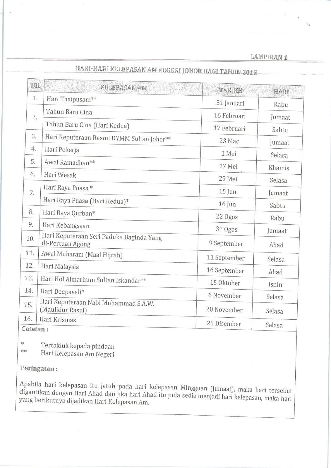 Hari Cuti Umum Johor 2018 5b2 5d Image