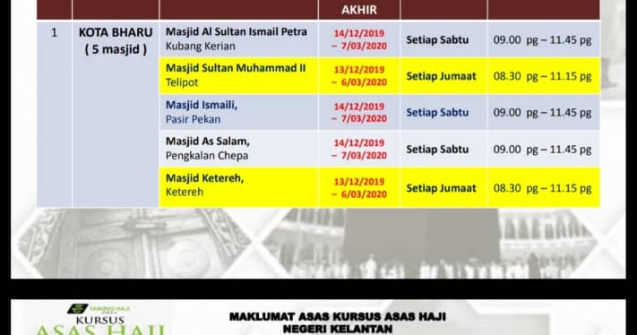 Jadual Kursus Asas Haji 2020 Kah Dan Lokasi Seluruh Negeri