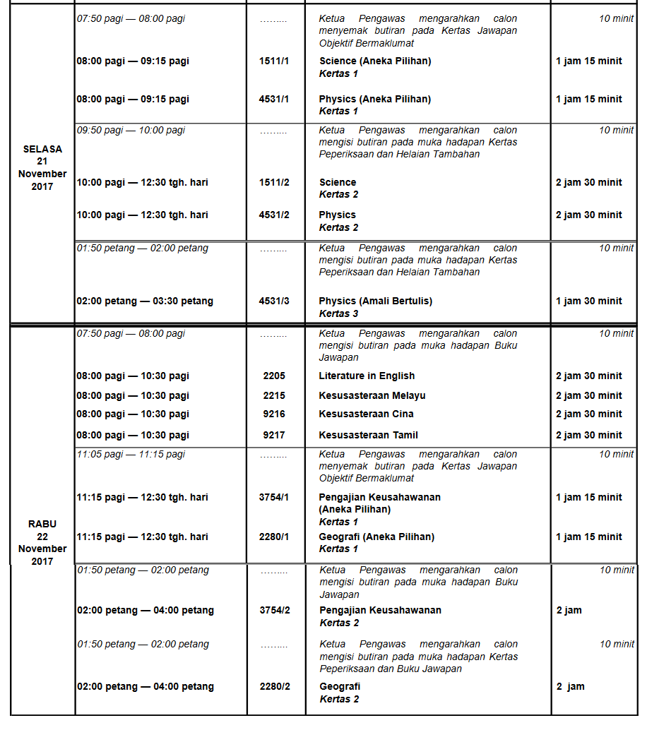 Jadual Peperiksaan Spm 2017 Pasukan Spm Smkbp 2017
