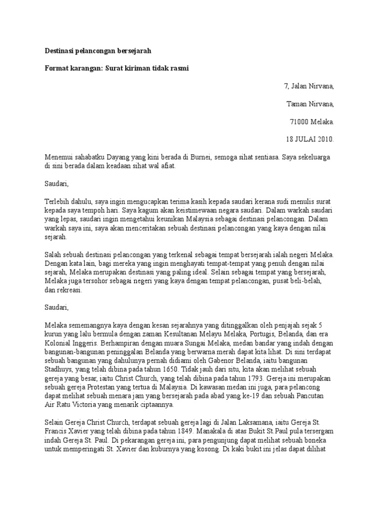 Karangan Spm Contoh Karangan Surat Tidak Rasmi 12