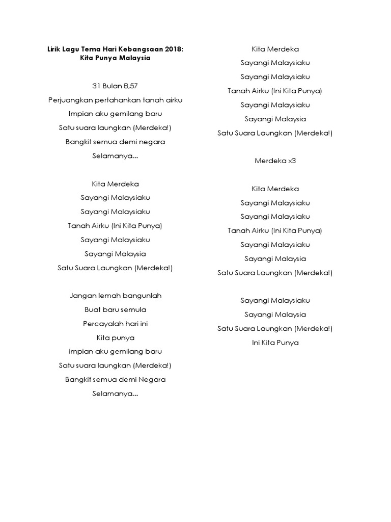 Lirik Lagu Tema Hari Kebangsaan 2018