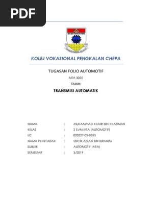 Kolej Vokasional Pengkalan Chepa Tugasan Folio Automotif