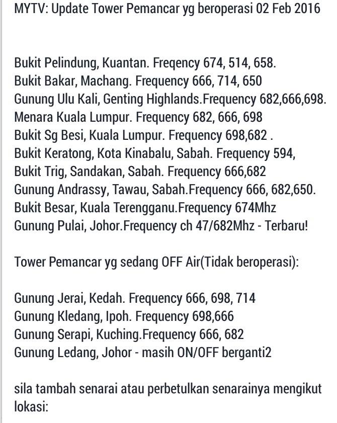 Malaysia List Frequency Pemancar Mytv 2019