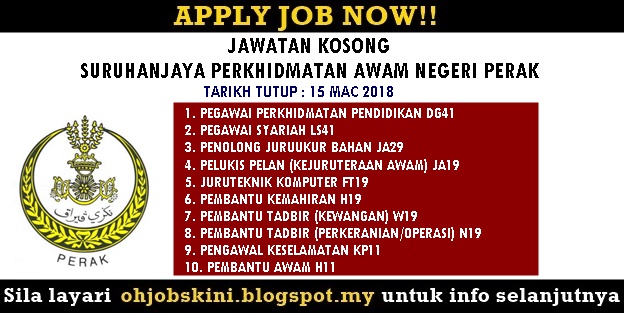 Jawatan Kosong Di Kerajaan Negeri Perak Pelbagai Jawatan Gred Tetap Berpencen Jobcari Com Jawatan Kosong Terkini