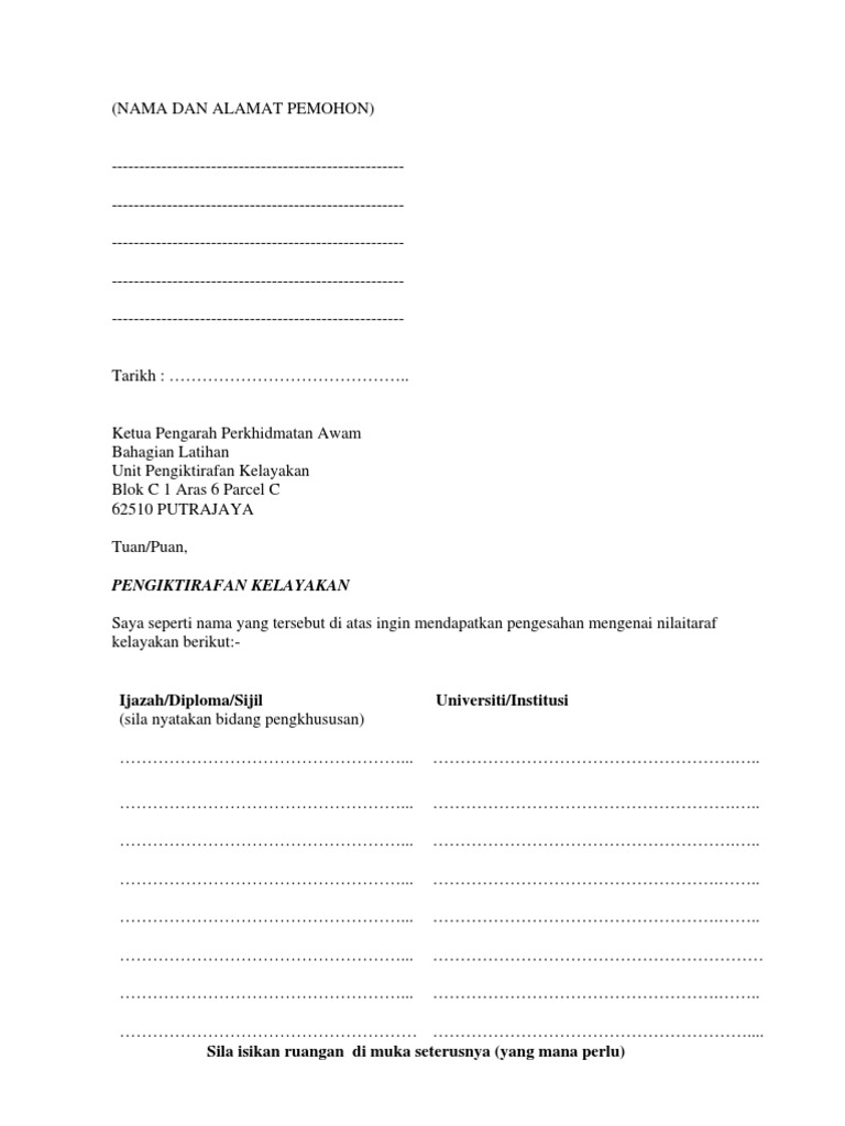 Borang Permohonan Surat Pengesahan Pengiktirafan Kelayakan Pdf Document