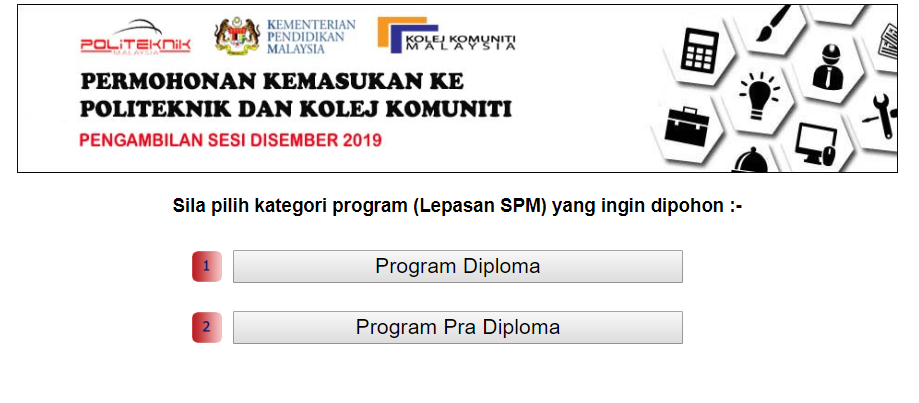 Permohonan Kemasukan Ke Politeknik Dan Kolej Komuniti Sesi Disember 2019