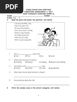 English Formative Test Paper 1 Year 3 March 2017 Fiction Literature