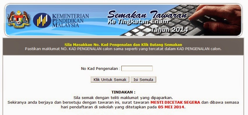 Semak Tawaran Ke Tingkatan 6 Sesi 2014 2015 Nikkhazami Com