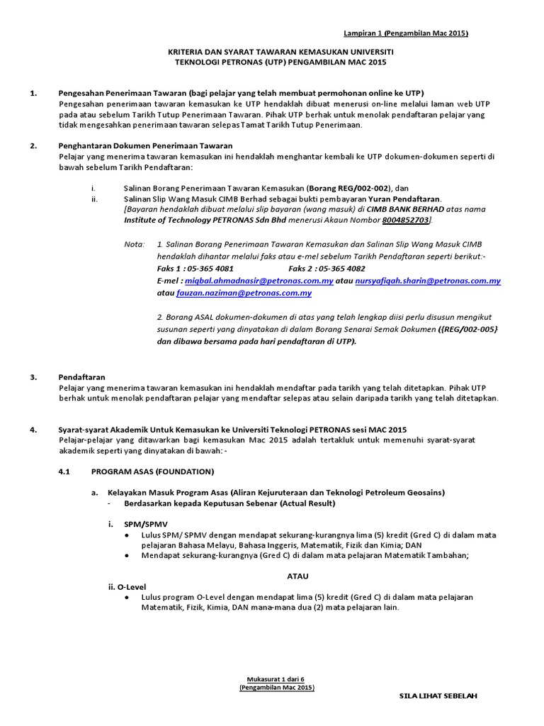 Syarat Kemasukan Ke Universiti Teknologi Petronas Surat Rasmi Z