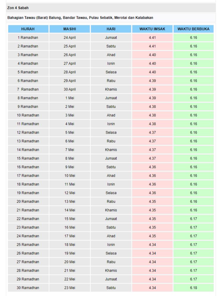 Waktu Imsak Dan Berbuka Puasa Negeri Sabah 2020 Sii Nurul Menulis Untuk Berkongsi