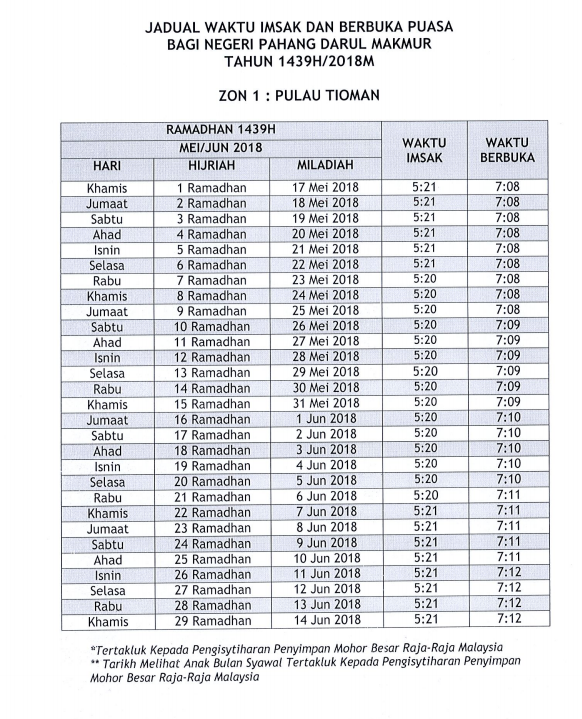 Jadual Waktu Imsak Dan Berbuka Puasa Tahun 1439h 2018m Bagi Negeri Pahang Cerita Ita