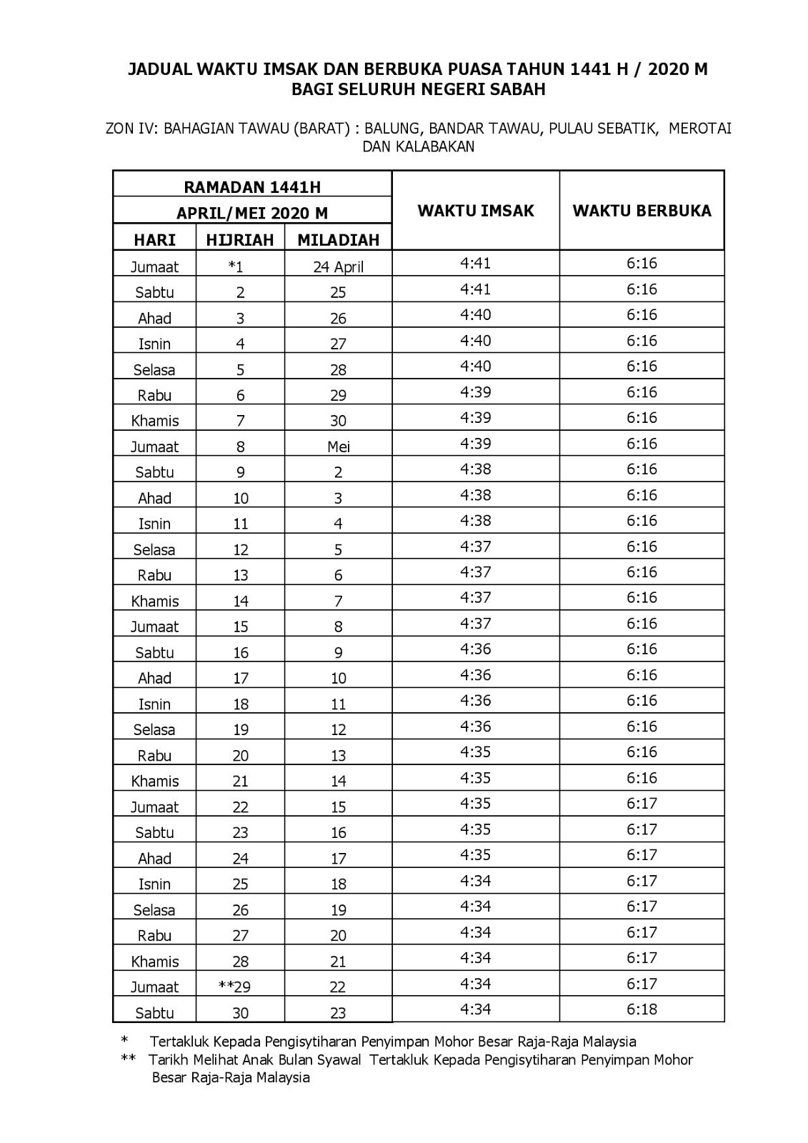 Sabah 2020 Jadual Waktu Berbuka Puasa Dan Imsak
