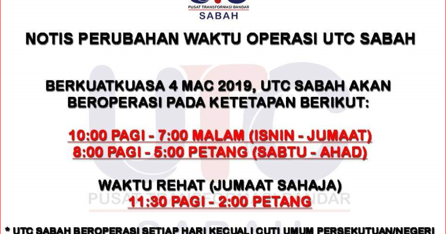Terkini Utc Dah Tukar Waktu Operasi 2019 Seluruh Malaysia